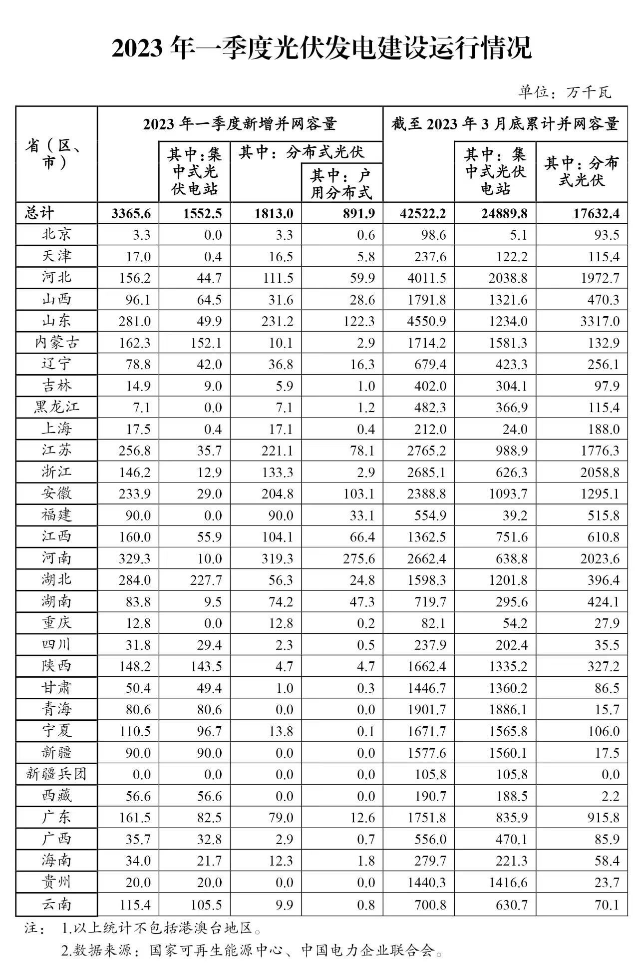 户用9 GW!国家能源局发布2023年一季度光伏发电建设运行情况