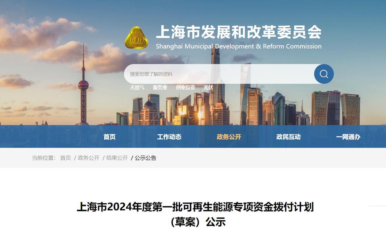 上海市2024年度第一批可再生能源专项资金拨付计划(草案)公示